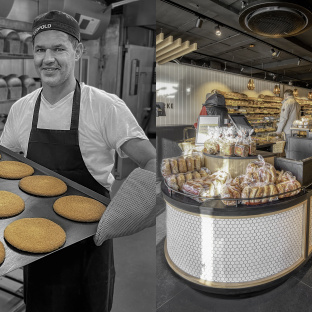 Leopold en Caroline Nagelkerke uit Prinsenbeek hebben na een flinke verbouwing precies de winkel die ze graag wilden, een eigenzinnige, moderne winkel met een warme uitstraling. Leopold: 'De grote aanloop van klanten kunnen we nu beter bedienen en vooral de verkoop van hard kleinbrood en slagroomgebak laten een sterke stijging zien. Onze klanten zijn goed enthousiast over de nieuwe winkel dus wij zijn dik tevreden!'