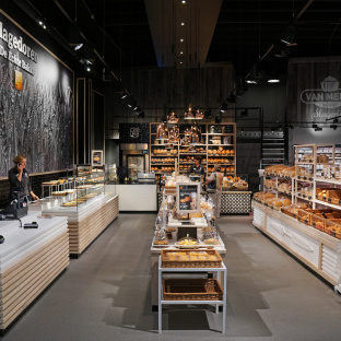 Een moderne kwalitatieve bakker met heerlijke producten maar tevens een winkel waar je makkelijk naar binnen loopt, dit met het oog op de vele passanten in het centrum. Whitewash eiken gecombineerd met witte accenten, gemaakt van een ijzersterk kunststof materiaal, geven de winkel eigenzinnig en ambachtelijke uitstraling. De extreme hoogte van de winkel wordt benadrukt door de enorme korenaren wand en de koperen lampenreeks boven het middeneiland. Ondertussen heeft de winkel een grote schare klanten en is Hagedoren zeer tevreden met het resultaat.