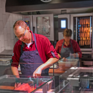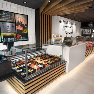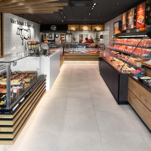 Voor Keurslagerij Ruud en Miny van Schaik uit Huizen ontwikkelde Infrashop een compleet nieuw winkelinterieur. In de afgelopen twee jaar hebben Ruud en Miny heel veel verschillende winkels bekeken: ‘We hebben bij een aantal collega’s inspiratie opgedaan, maar ik vond niet wat ik zocht. Door de tip van Smeva ben ik op de website van Infrashop gaan kijken en het winkelconcept sprak ons heel erg aan. Alleen de toonbank vervangen verandert niets aan de winkelbeleving. Het biedt geen extra kansen en zorgt ook niet voor extra impulsen. We hebben ook één van de door Infrashop gebouwde winkels in Amsterdam bezocht en de sfeer beviel ons direct. Eenmaal aan tafel met Infrashop vielen de puzzelstukjes op hun plaats.’
