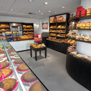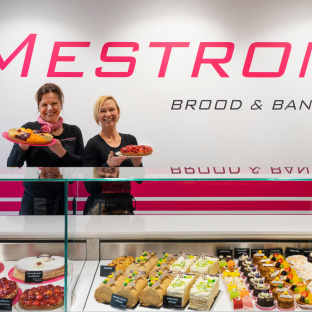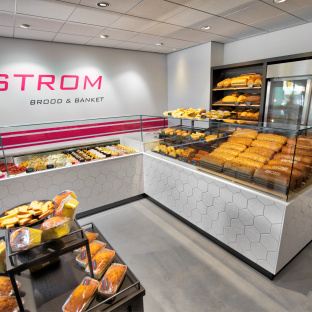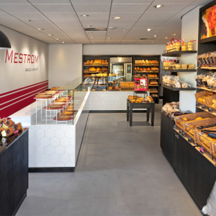 Roy en Wendy Mestrom van Brood en Banketbakkerij Mestrom uit Geleen benaderde Infrashop voor een nieuw filiaal in winkelcentrum Zuidhof in Geleen. Wij ontwikkelde voor Mestrom een moderne strakke winkel waarin de producten van Mestrom de hoofdrol vervullen. De prachtige éénlaags gebakpresentatie met octagon tegels en hoogwaardige witte kunststof werkbladen is een echte eye-catcher in de winkel. De aansluitende vlaaien presentatie is onderscheidend ten opzichte van de traditionele vlaaienwanden met schuine spiegelwand. Roy en Wendy zijn erg te spreken over de eerste weken na opening, klanten zijn zeer enthousiast en ook de medewerksters hebben hun draai helemaal gevonden.