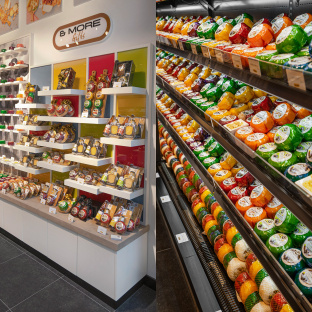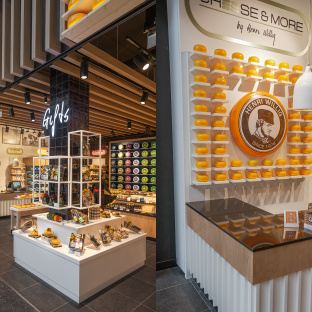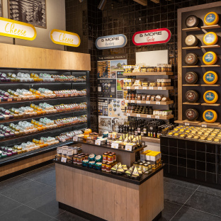Door de opdeling van de verschillende productgroepen winkelen klanten op hun gemak in deze winkels. Dit in combinatie met het gastvrije winkelpersoneel van Cheese & More zorgt voor een ongedwongen maar succesvol en herkenbaar winkelconcept.